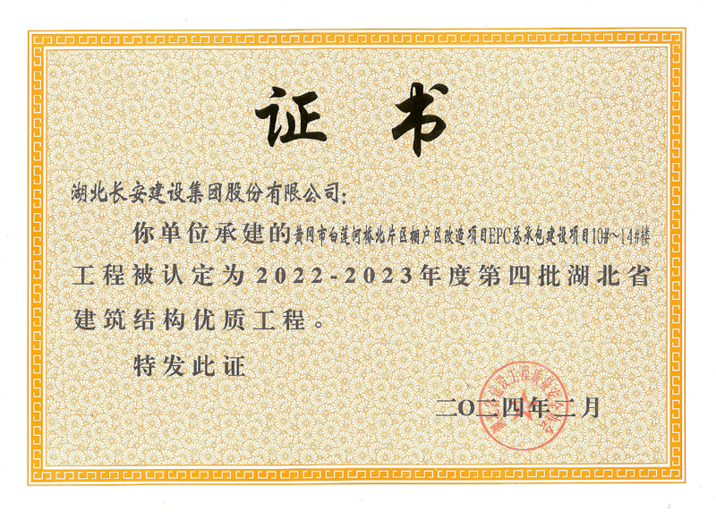 • 2025-11-25 湖北長安建設9項工程獲評省(楚天)優質工程